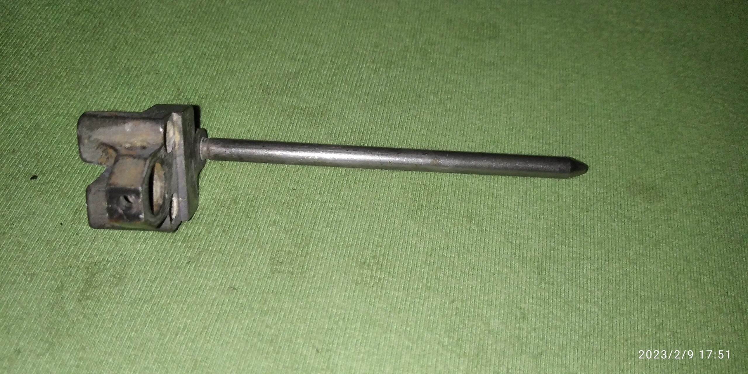 U druhé navrtán otvor aby se nová tyčka nemusela temovat (nýtovat)